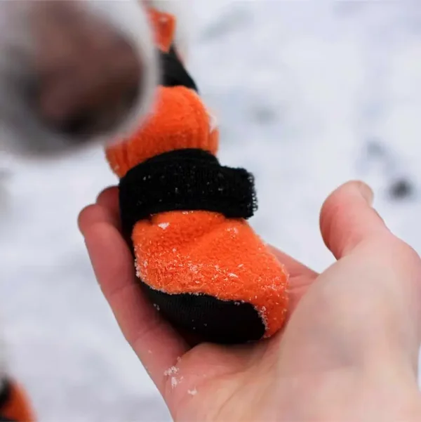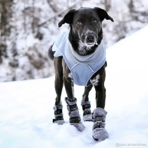 - voorkomt dat sneeuw in de vacht en tussen de poten gaat klonteren